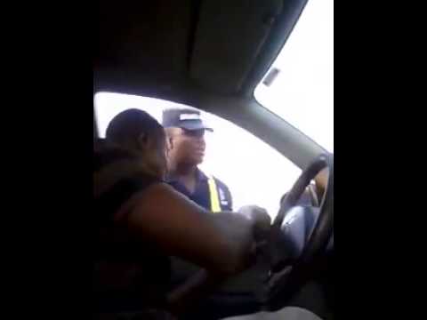 Here is the interaction between the policeman and the occupants of the vehicle:
